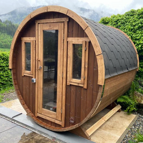 Der Holzofen passt auch bei diesem Außensauna-Modell hervorragend zum rustikalen Skandinavien-Charme. Durch die runde Form zirkuliert die Wärme optimal, was ein Holzofen ideal unterstützt: Das Feuer erwärmt die in der Rundung gelagerten Steine gleichmäßig und das Fass speichert die Wärme gut. In einer Fasssauna mit Holzofen entsteht so schnell eine hohe Temperatur und weicher Dampf bei Aufgüssen. Unsere Vitkonwood-Fasssaunen gibt es in verschiedenen Größen (für 2 bis ca. 8 Personen) und Ausstattungen. Ob original finnisch mit Holzofen und rauchendem Schlot oder bequem mit Elektroofen – Sie haben die Wahl.