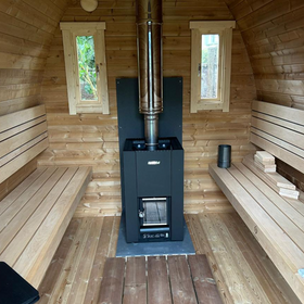 In diesem kompakten Saunapod schafft ein Holzofen eine besonders urige Stimmung. Durch die geschwungene Form verteilt sich die Hitze gleichmäßig, und ein holzbefeuerter Ofen bietet genügend Leistung, um auch ein größeres Pod (z.B. 4 Meter Länge) auf Temperatur zu bringen. Wir bieten Iglusaunen mit oder ohne Vorraum an; mit Holzofen ausgestattet wird daraus ein kleiner Sauna-Hügel mit Schornstein. Viele Kunden berichten ,wie schnell ein Pod mit einem Harvia 20 Pro Holzofen auf über 80°C kommt und die Wärme lange hält.