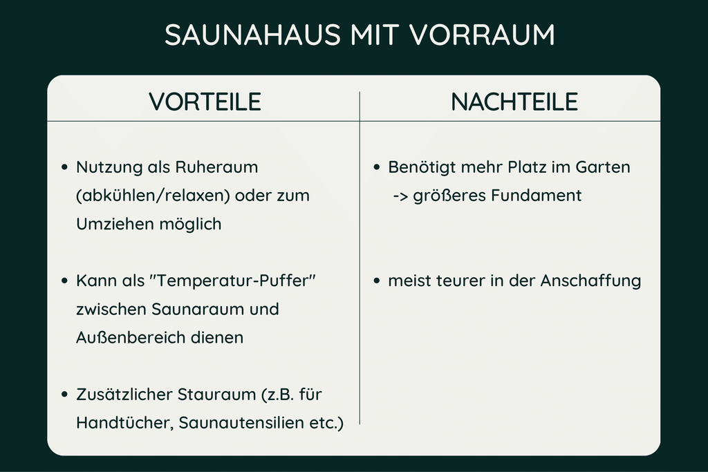 - Wünschen Sie sich ein Saunahaus mit Vorraum oder doch lieber ohne?