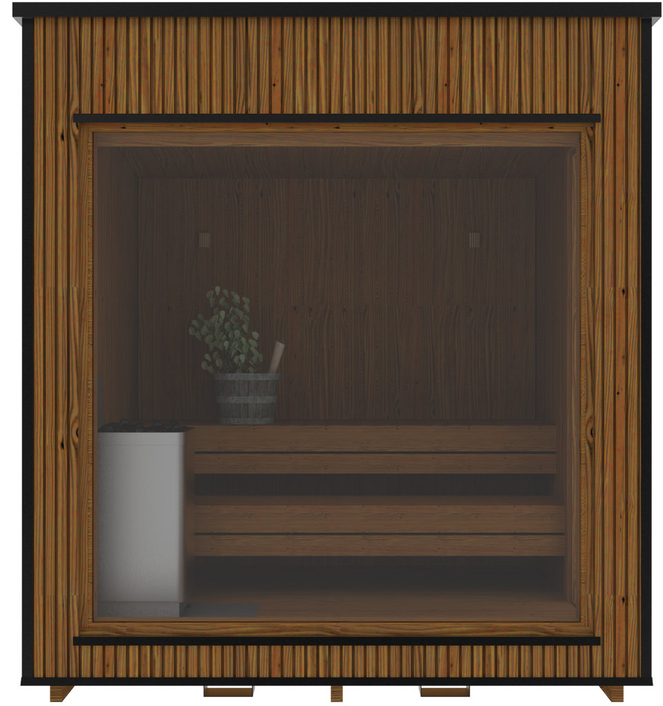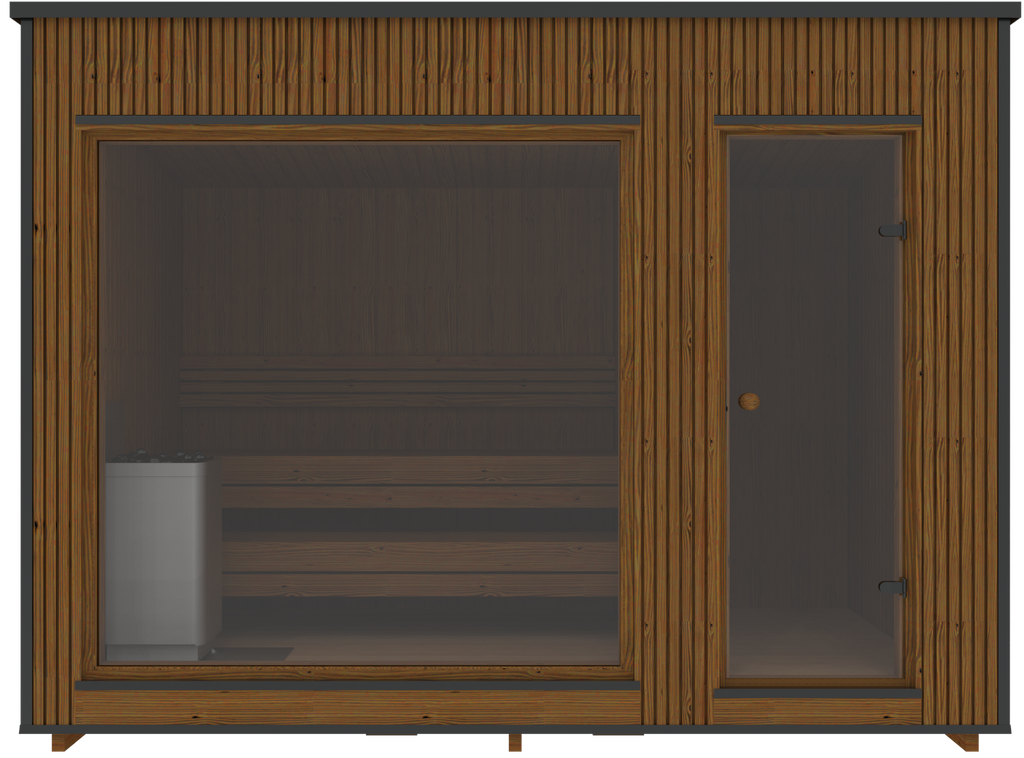 • hochwertige Gartensauna aus Thermoholz (thermisch behandeltes, nordisches Kiefernholz) - langlebig, geringe Restfeuchtigkeit