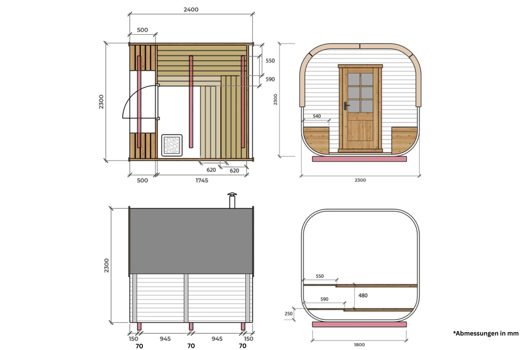Produktbeschreibung - Gartensauna Fasssauna CUBE 230 x 240 cm