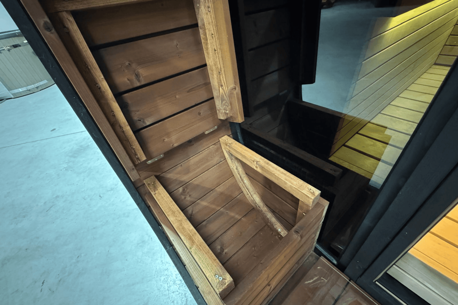 - Inklusive PREMIUM Saunabanksystem im Saunaraum aus hochwertigem Erlen-Massivholz