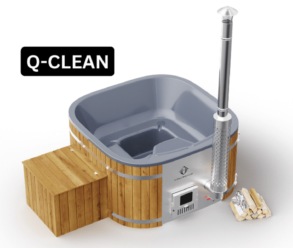 Betreten Sie eine Welt unvergesslich entspannender Momente in Ihrem eigenen exklusiven Premium Quadro Hot Tub von VITKONWOOD. Das Fertigpaket "Q-Clean" ermöglicht es Ihnen, einen hervorragenden Badezuber mit Holzfeuerung zu genießen, der speziell für diejenigen entwickelt wurde, die eine effiziente Wasserfiltration benötigen, um das Wasser über einen längeren Zeitraum nutzen zu können, ohne es nach jeder Anwendung entleeren zu müssen.