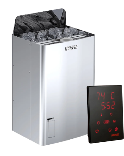 Ein Elektroofen mit externer Steuereinheit ermöglicht den Ofen z.B. mittels Smartphone anzusteuern. Mithilfe von den Hersteller-Apps (z.B. MyHarvia, HUUM-App) lässt sich der Ofen beispielsweise auch aus der Ferne starten. Zudem können Sie die Temperatur über das separate Bedienfeld in der Sauna oder auch per Smartphone regulieren.