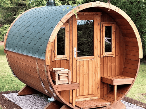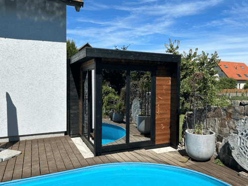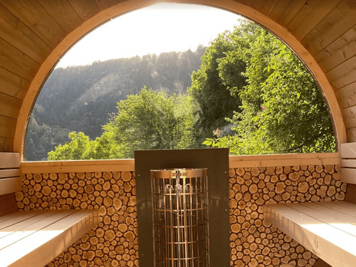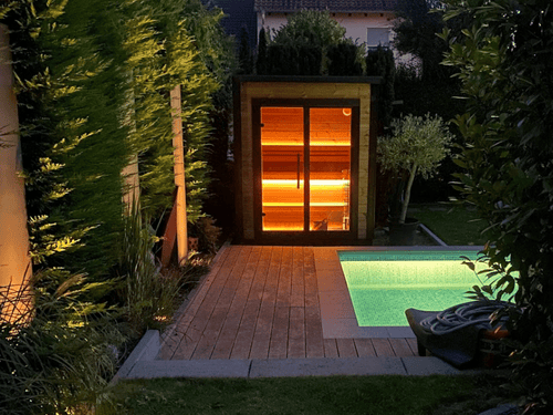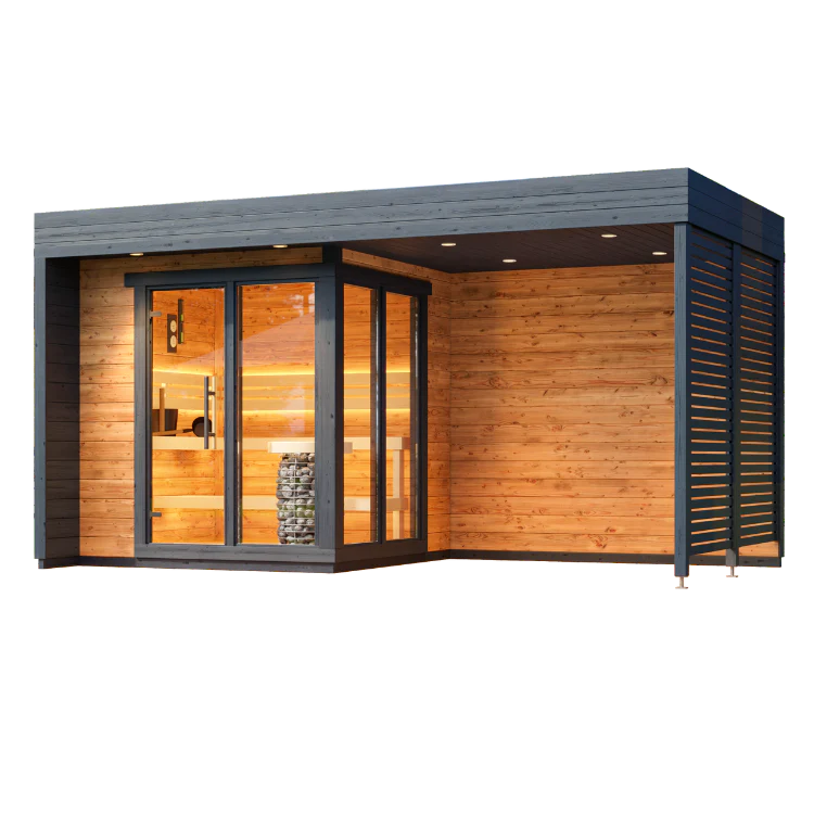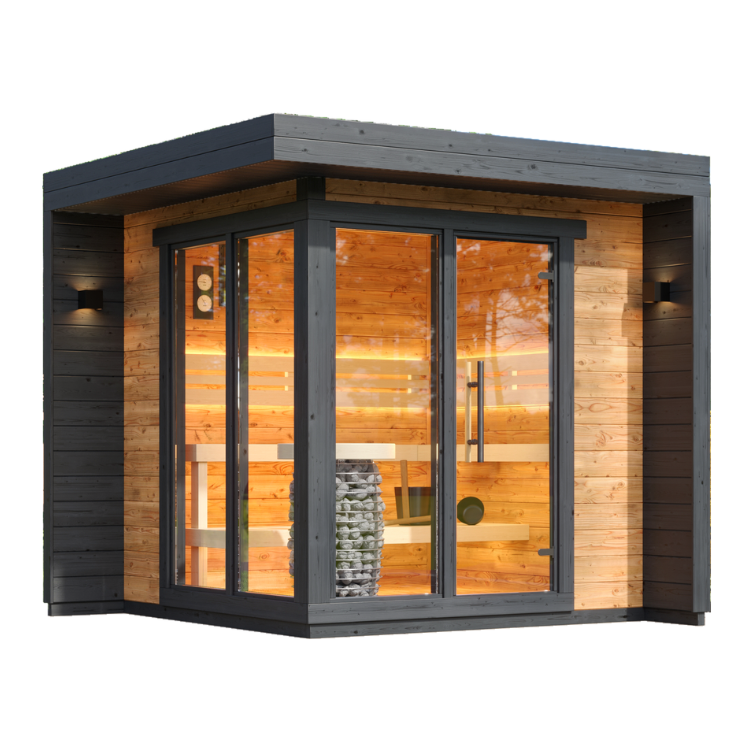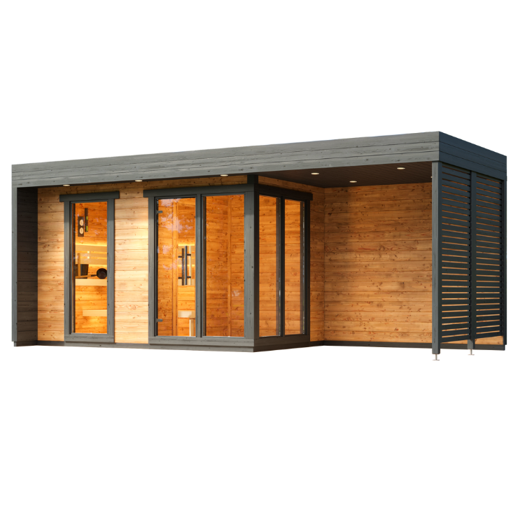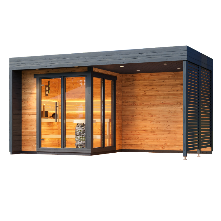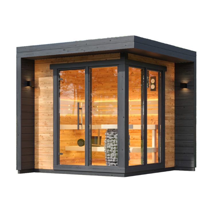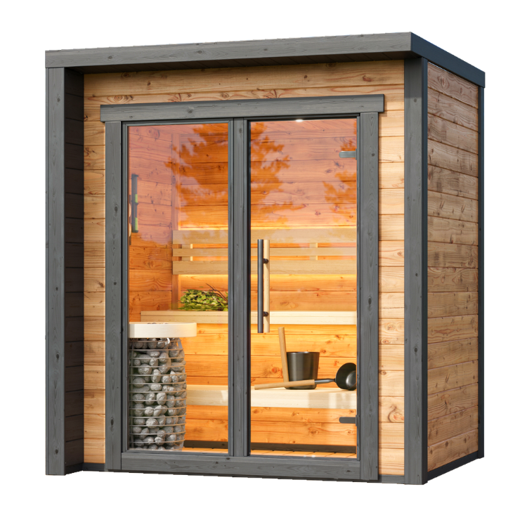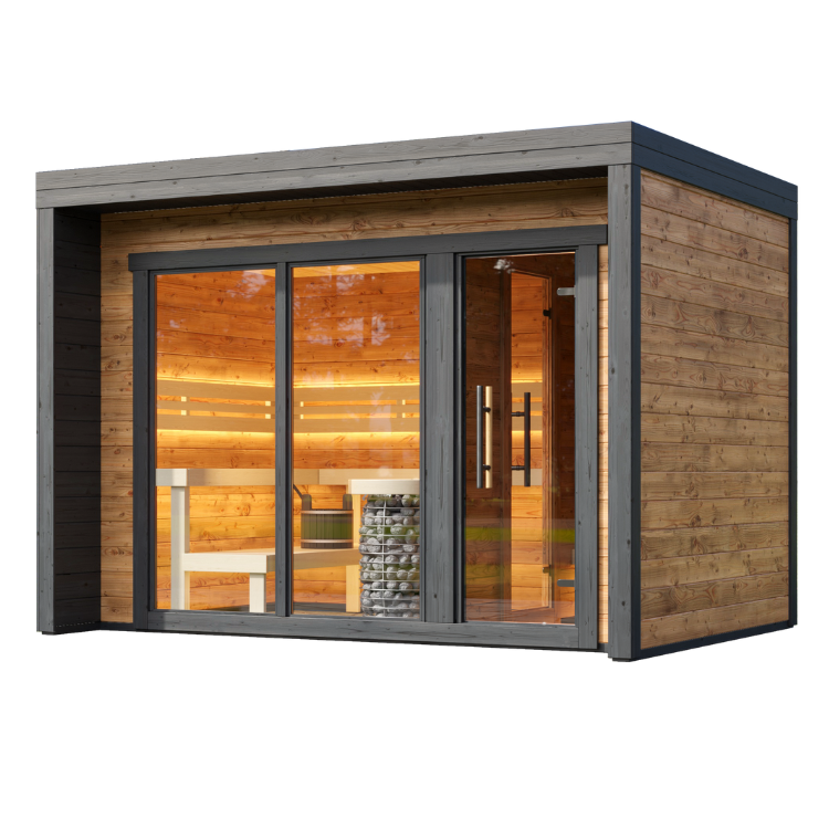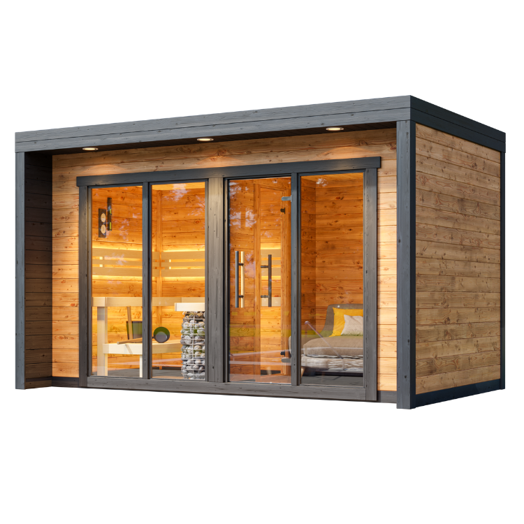 - hochwertiges Saunahaus aus langlebigem Thermoholz