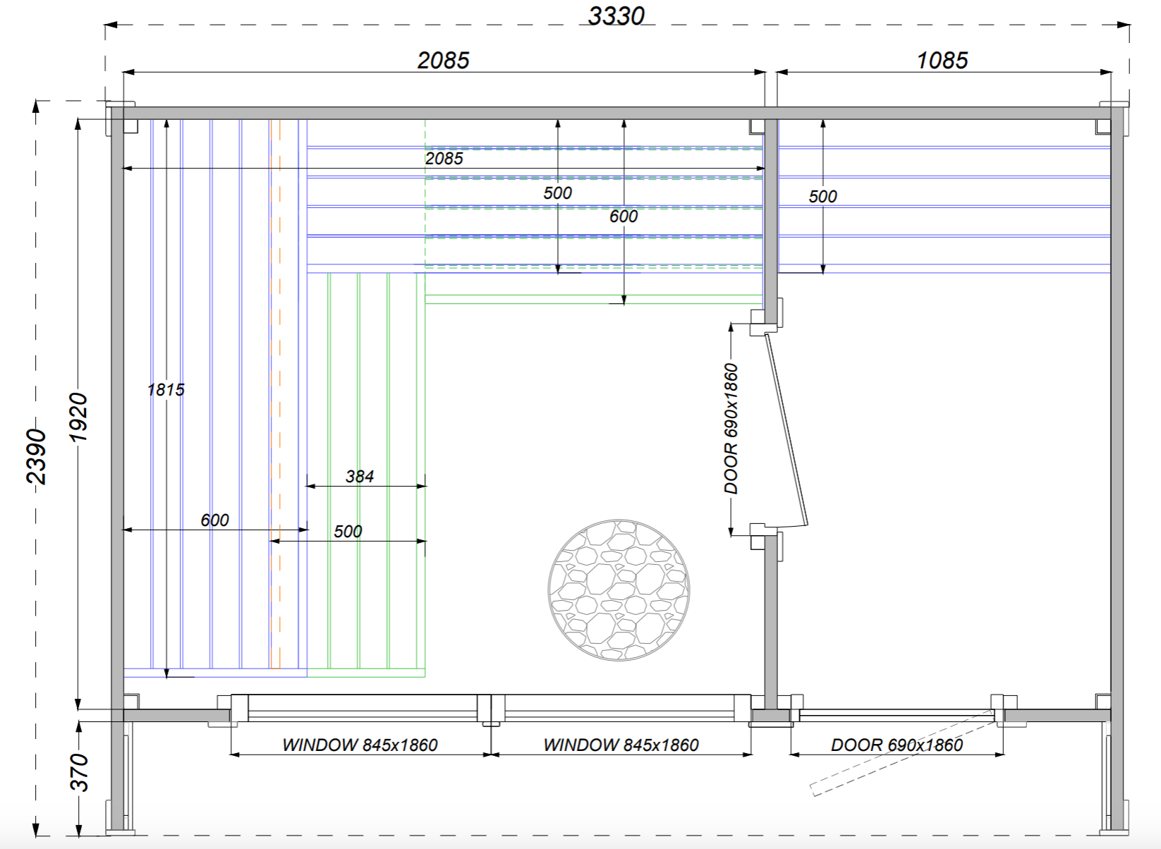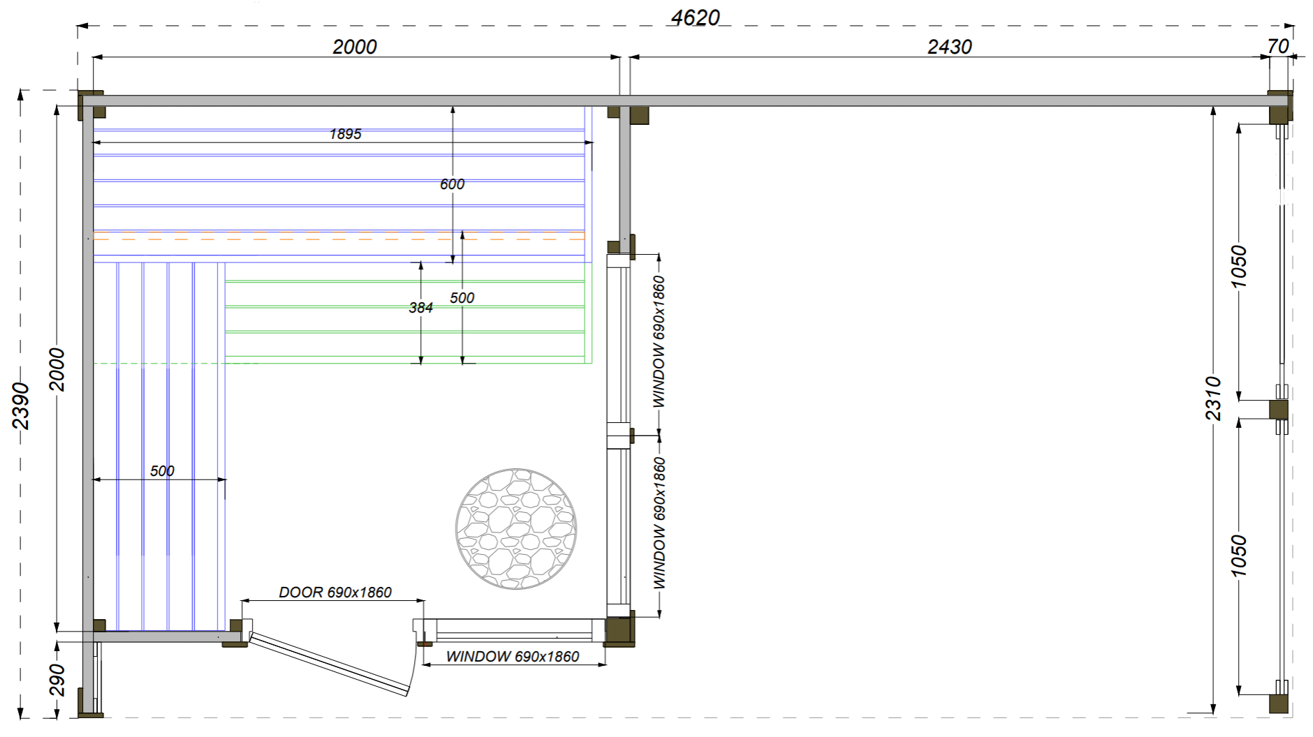 - Inklusive Abluss-Metallrinne in Saunaraum